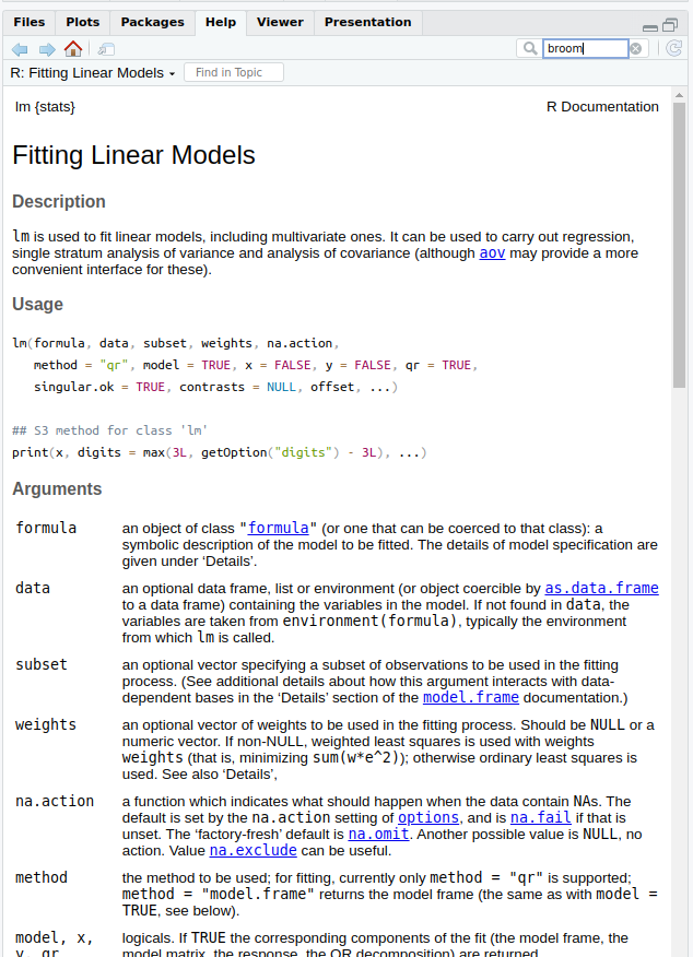 tidy() and glance() from the broom package to produce nice tidy tibbles# A tibble: 6 × 7